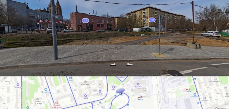 Зорге — первая из четырёх платформ, которые я предлагаю разместить здесь. Восточная конечная, пересадочная на одноимённую станцию Московского Центрального Кольца. Здесь же находится автобусная остановка.