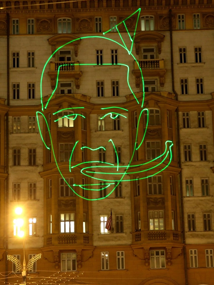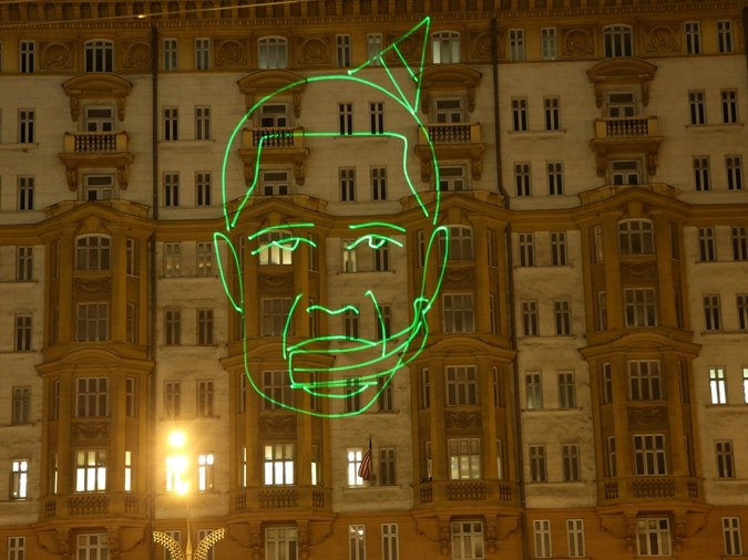 Ночью, 4 августа, активисты инициативной группы московских студентов спроецировали на здание посольства США на Новинском бульваре необычную картинку. Изображение напоминало лицо Барака Обамы. Композиция была анимационной и в рот нарисованному президенту США нырял банан. В завершение акции на здание американской дипмиссии была спроецирована надпись: «Happy Birthday».