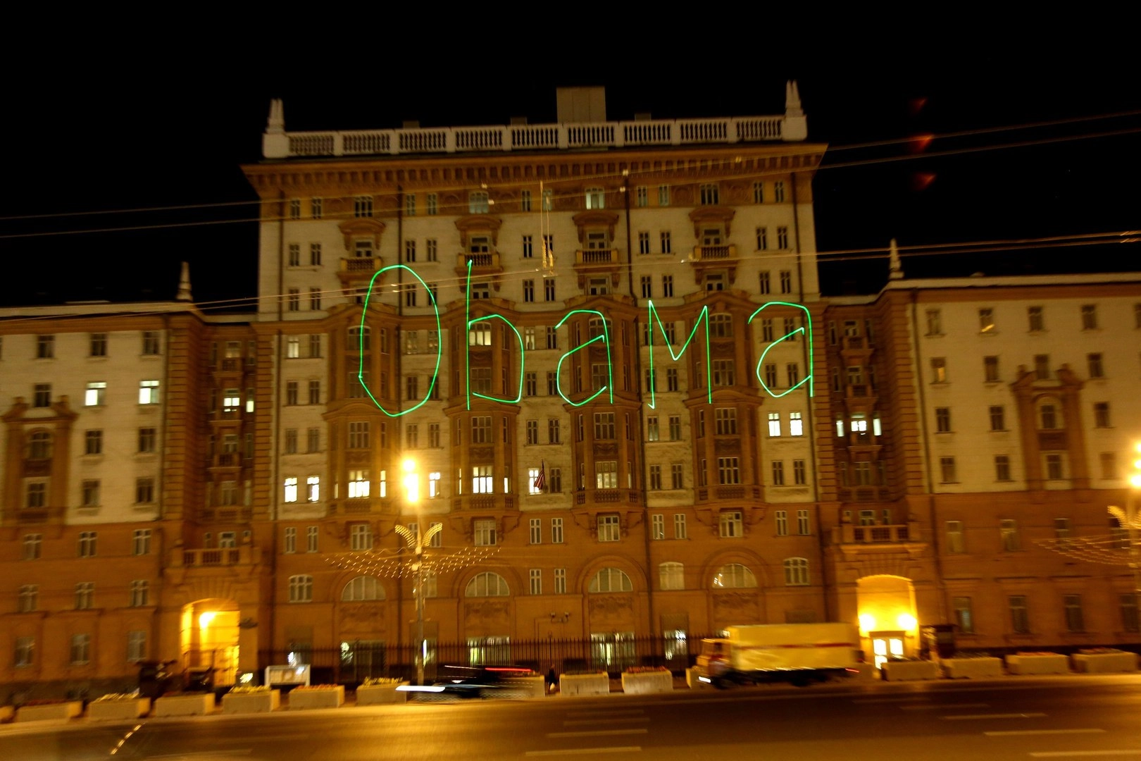 Московские студенты организовали лазерное поздравление для Барака Обамы