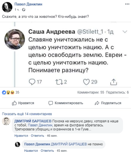Эта перепалка в Twitter быстро разошлась по Сети — многие пользователи выразили недоумение, а некоторые, как, например, политолог Павел Данилин, так и вовсе высказались крайне грубо.