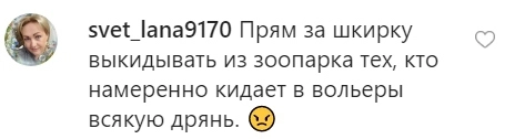 Сотрудники зоопарка уточнили, что есть посетители, которые, несмотря на большое количество мусорных баков на территории, выбрасывают мусор прямо в вольеры. Год назад в вольер птице эму посетители бросили яблоко. Она тут же попыталась проглотить фрукт целиком и чуть не погибла.
