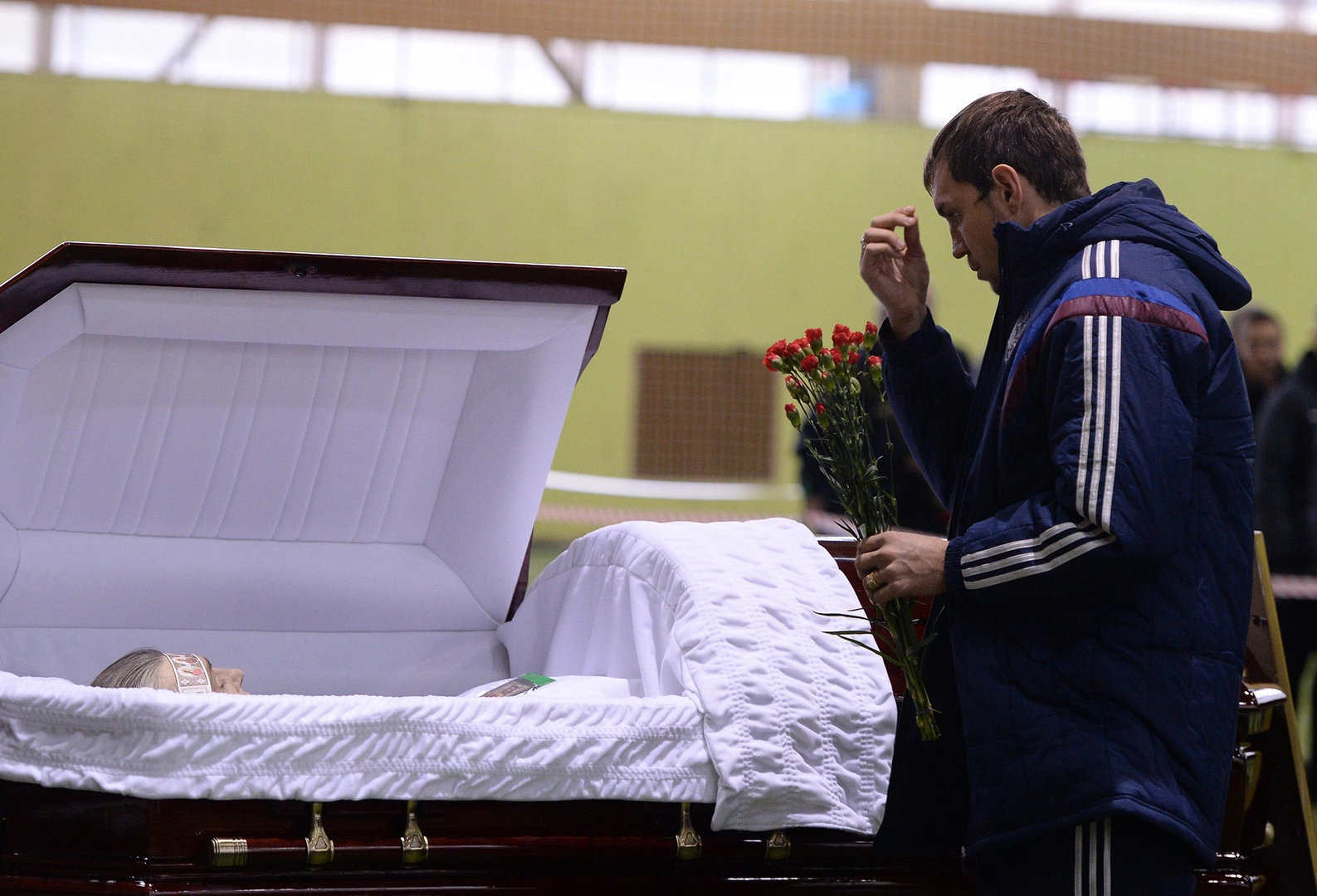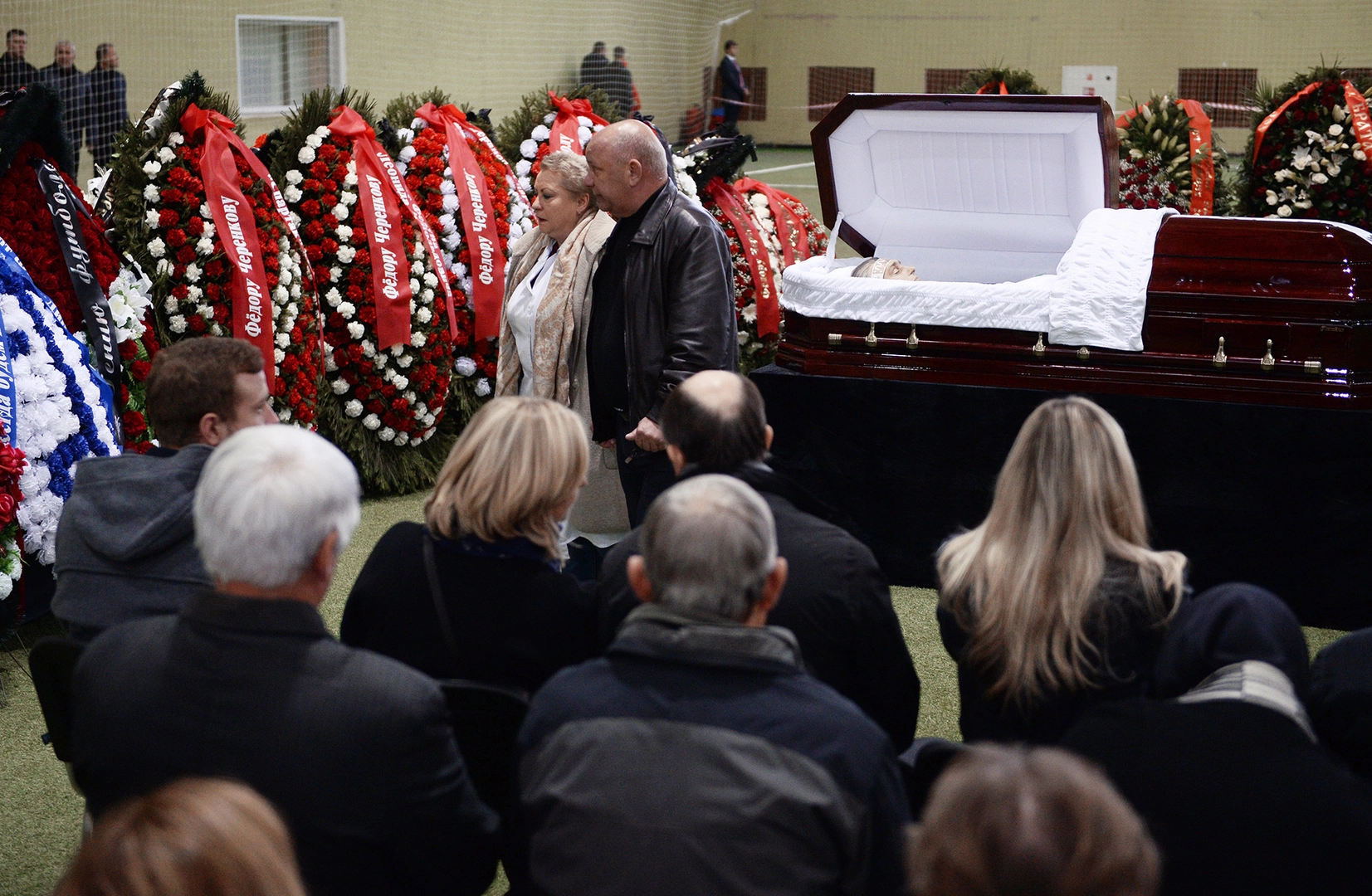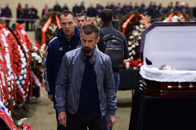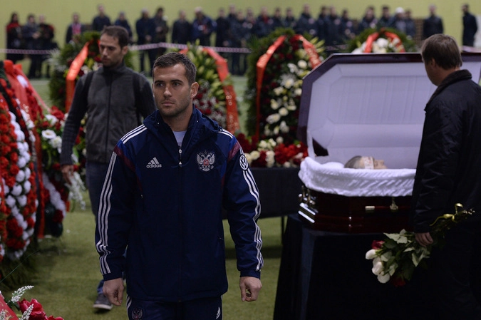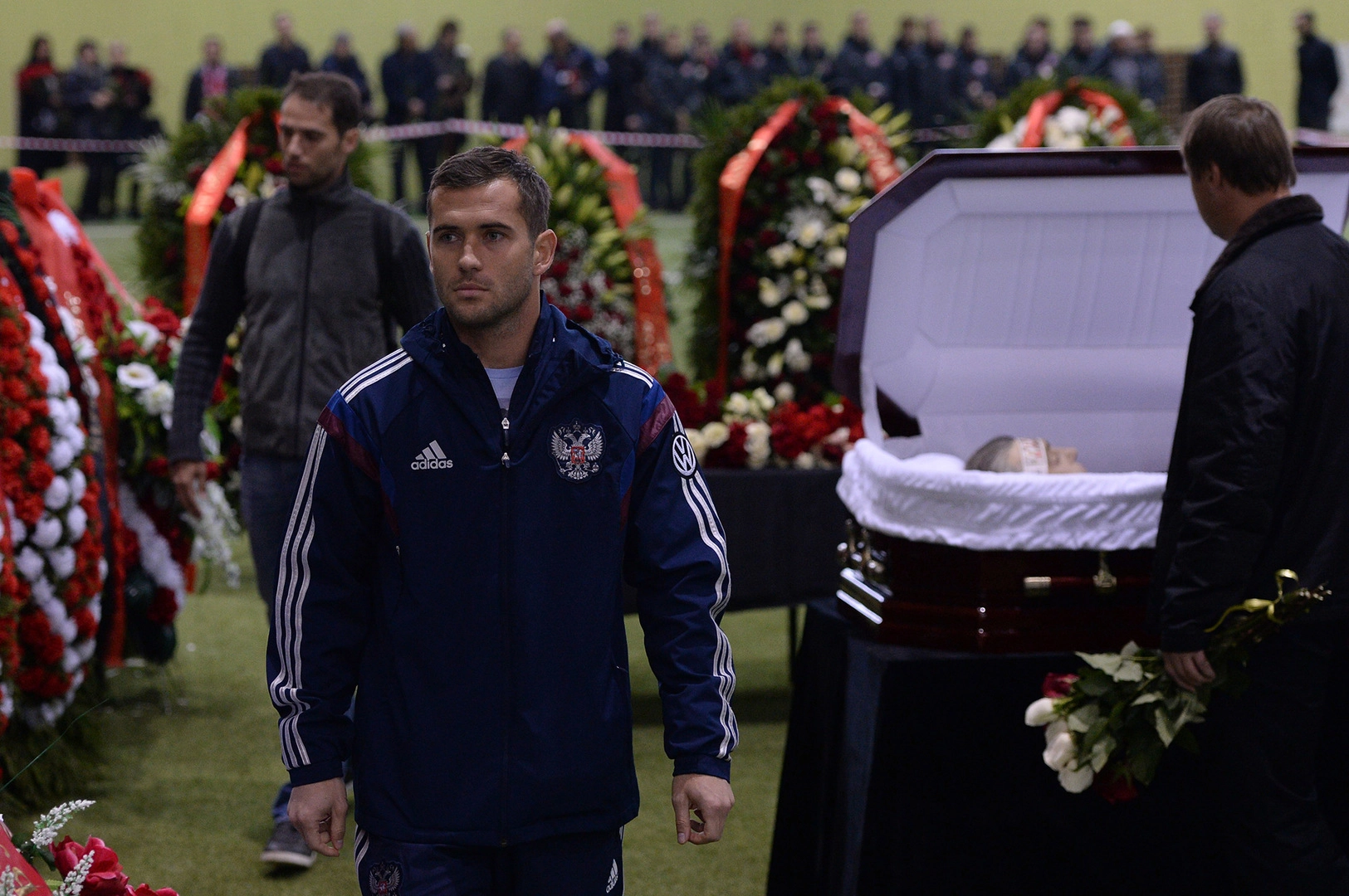 Игрок сборной России Александр Кержаков на церемонии прощания с футболистом Федором Черенковым в Москве.