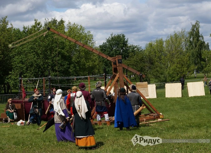 Для демонстрации штурма средневековой крепости в «Коломенском» был сооружен фрагмент деревянной крепостной стены с воротами и башней. Для обстрела штурмуемого города «монгольская сторона» приготовила точную копию средневекового метательного орудия — требушета, представляющего собой деревянную катапульту, приводимую в действие при помощи падающего груза.