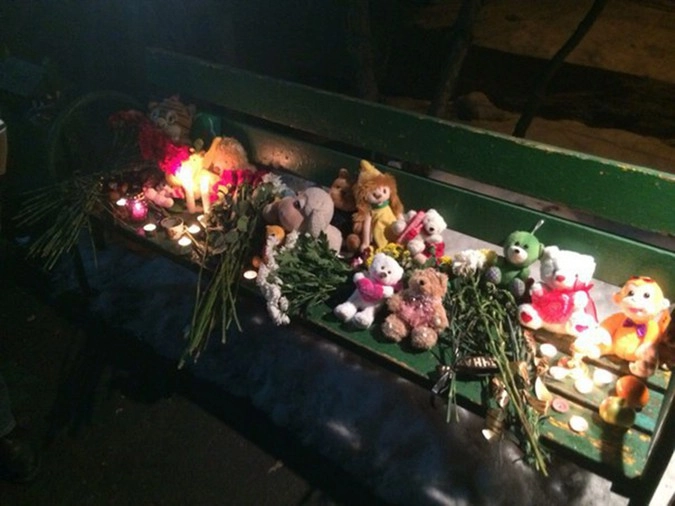Москвичи несут цветы и игрушки к станции метро «Октябрьское поле»