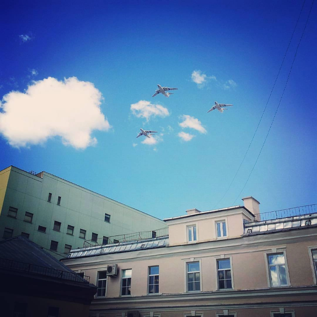 Москвичи отсняли с разных ракурсов репетицию воздушной части Парада Победы