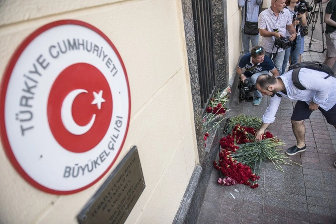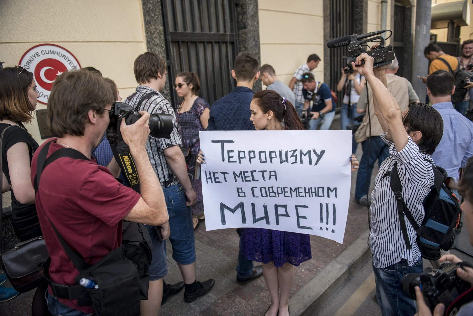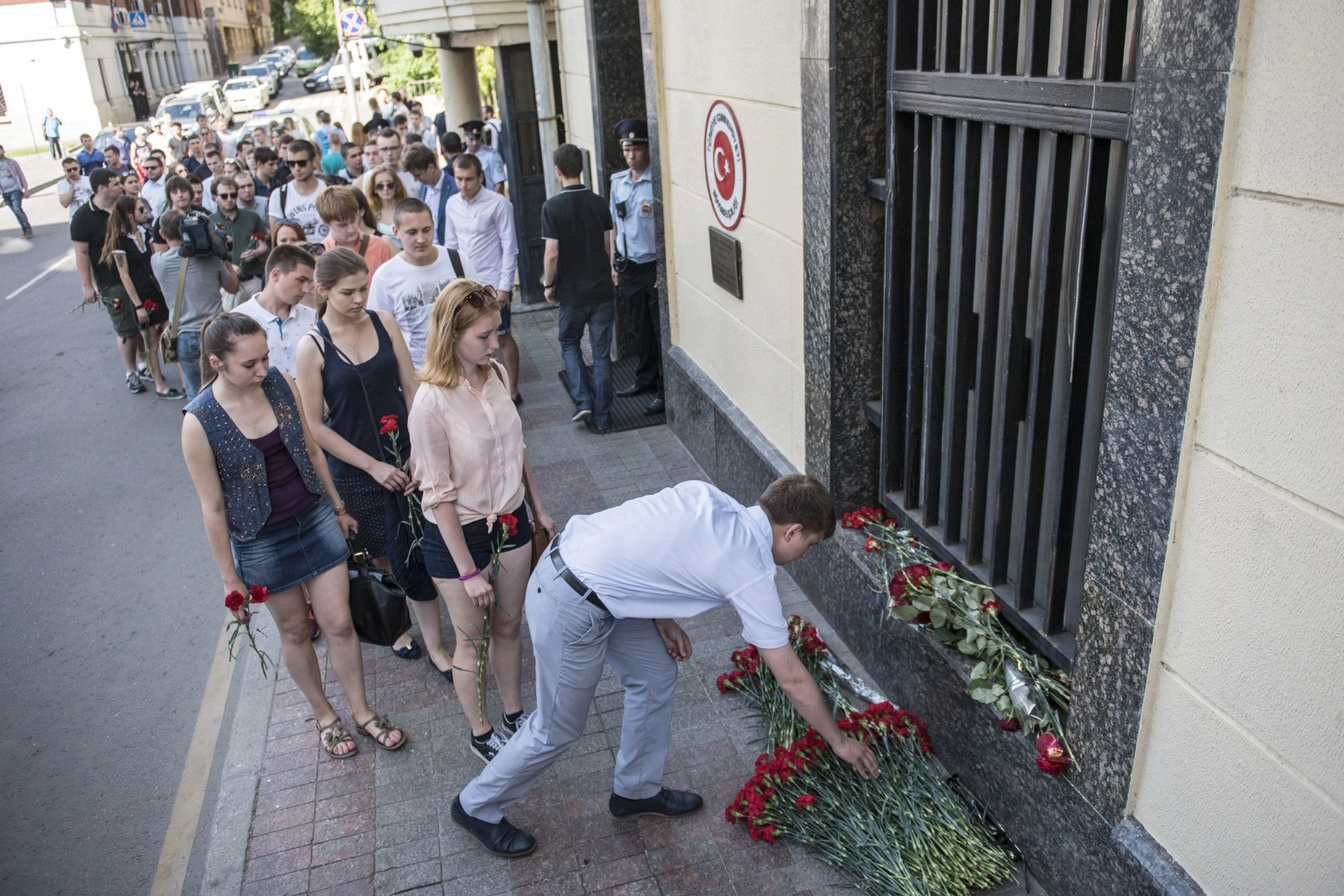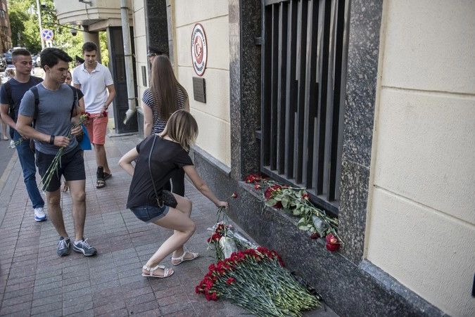 В Москве у посольства Турецкой республики прошла траурная акция: жители столицы возложили цветы и свечи в память о погибших в результате теракта в аэропорту Стамбула, тем самым выразив соболезнования народу Турции.