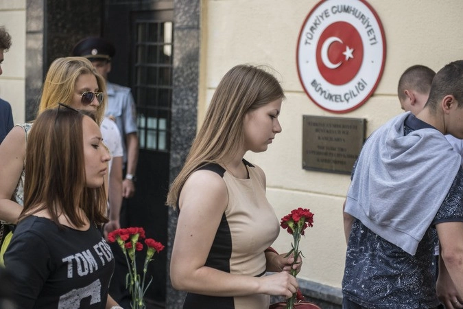 Москвичи почтили память погибших при теракте в аэропорту Стамбула: фото
