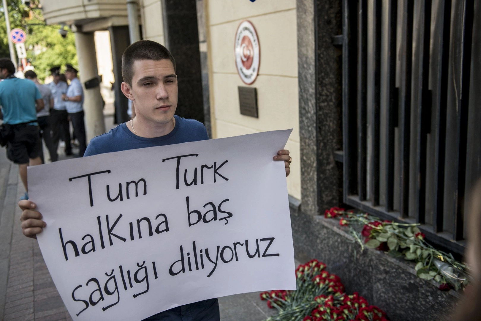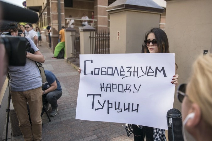В траурном мероприятии приняли участие студенты и активисты общественных организаций — всего около сотни человек. Участники акции также развернули плакаты на русском и турецком языках: «Соболезнуем народу Турции», «Терроризму нет места в современном мире!»