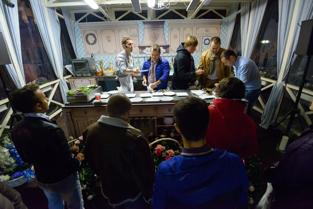 Восемь одиноких юношей и девушек совместно создали незабываемую романтическую атмосферу прямо в центре Москвы. Для этого девушки научились всем тонкостям сервировки стола на мастер-классе от дизайнера интерьеров Марии Сафроновой. А юноши попробовали себя в роли поваров и под руководством шефа Ивана Любимова приготовили знаменитый десерт «Шоколадный фондан».