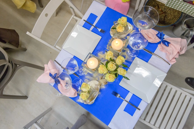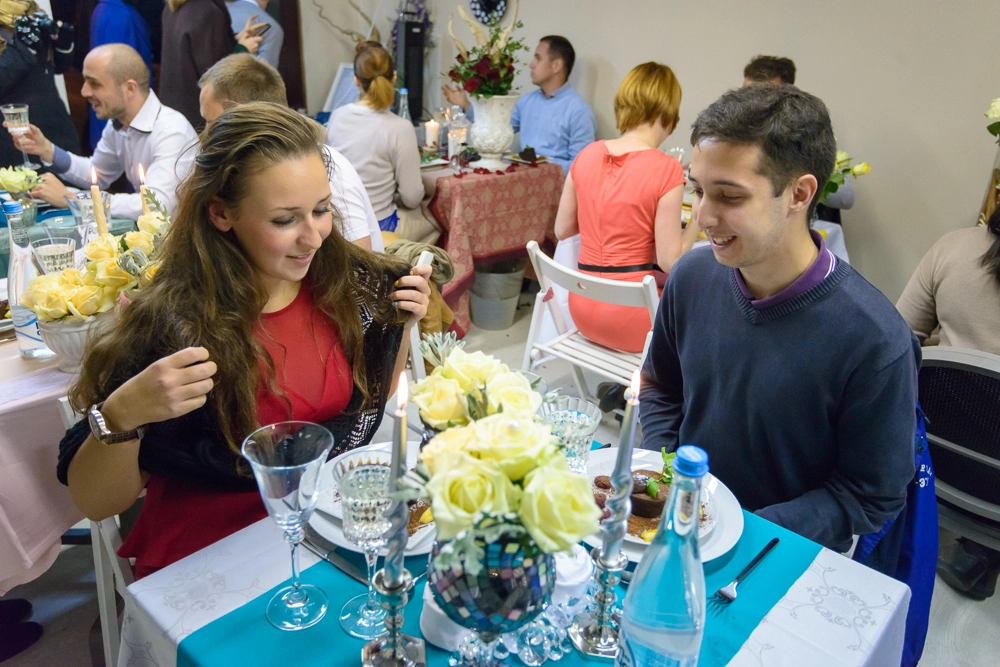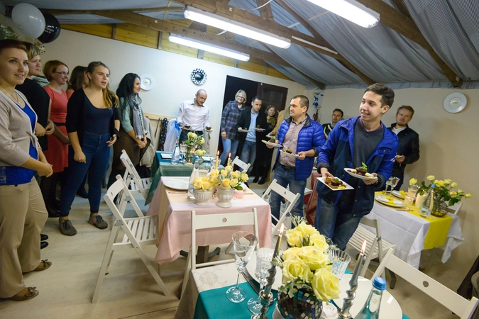После подготовительного этапа наши герои отправились на свидание «вслепую». Каждый молодой человек выбрал себе стол, сервировка которого ему понравится больше других. Затем мужчины угощали десертом хозяек вечера.