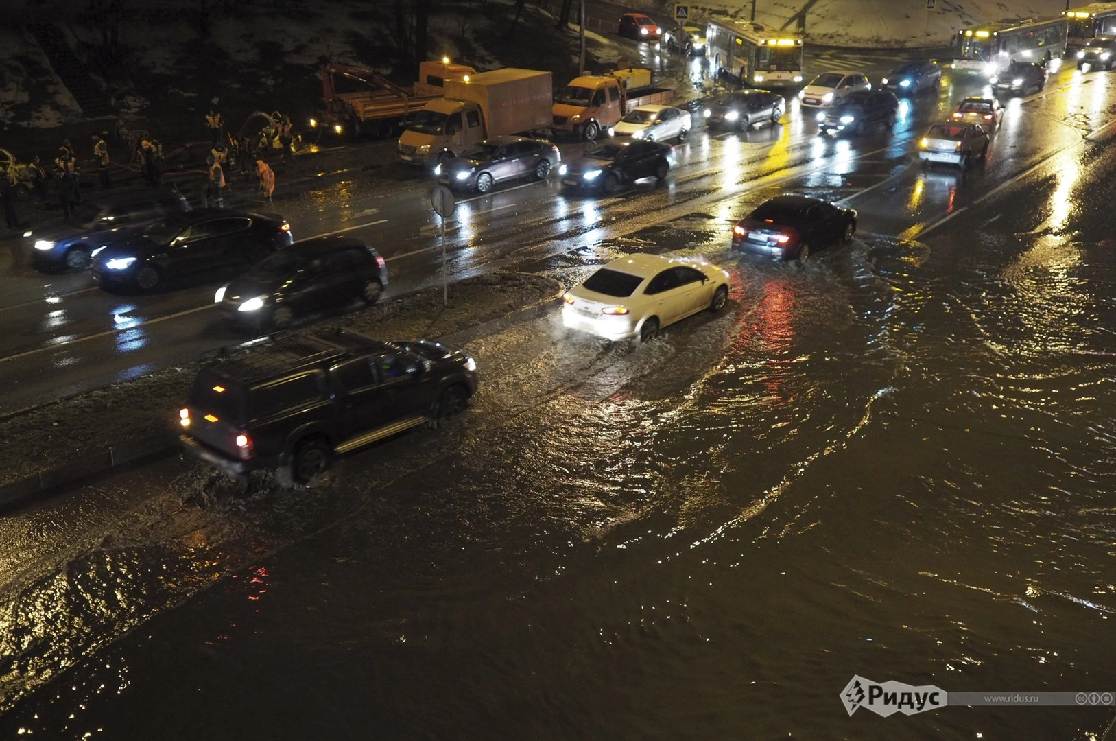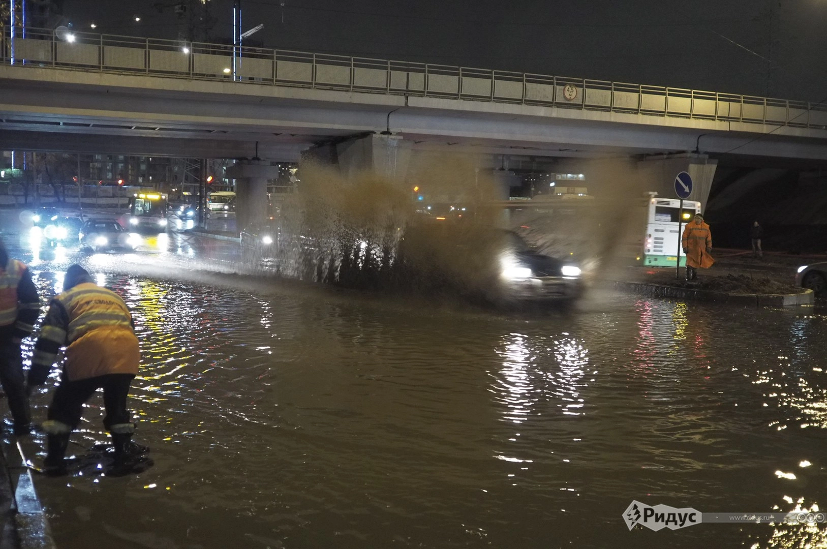 Впрочем, к вечеру, по свидетельству корреспондента «Ридуса», аварийные службы частично справились со стихией. Одна из полос улицы уже осушена, скоро из-под воды будет извлечена вся проезжая часть.