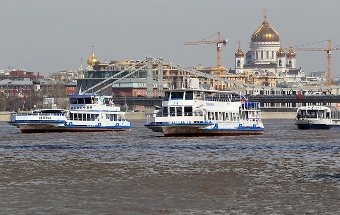 Речные суда идут по Москве-реке. © Руслан Кривобок/РИА Новости