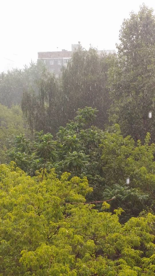 Сильная гроза вновь обрушилась на столичный регион. Как и прогнозировали синоптики, в столице идет проливной дождь, сопровождающийся порывистым ветром. В некоторых районах города порывистый ветер привел к повреждению деревьев.