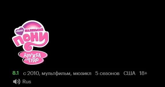 Если на сайте «Кинопоиска» набрать в поисковой строке «Мой маленький пони» и перейти по ссылке на страницу мультфильма, то действительно можно обнаружить у него «взрослый» рейтинг.