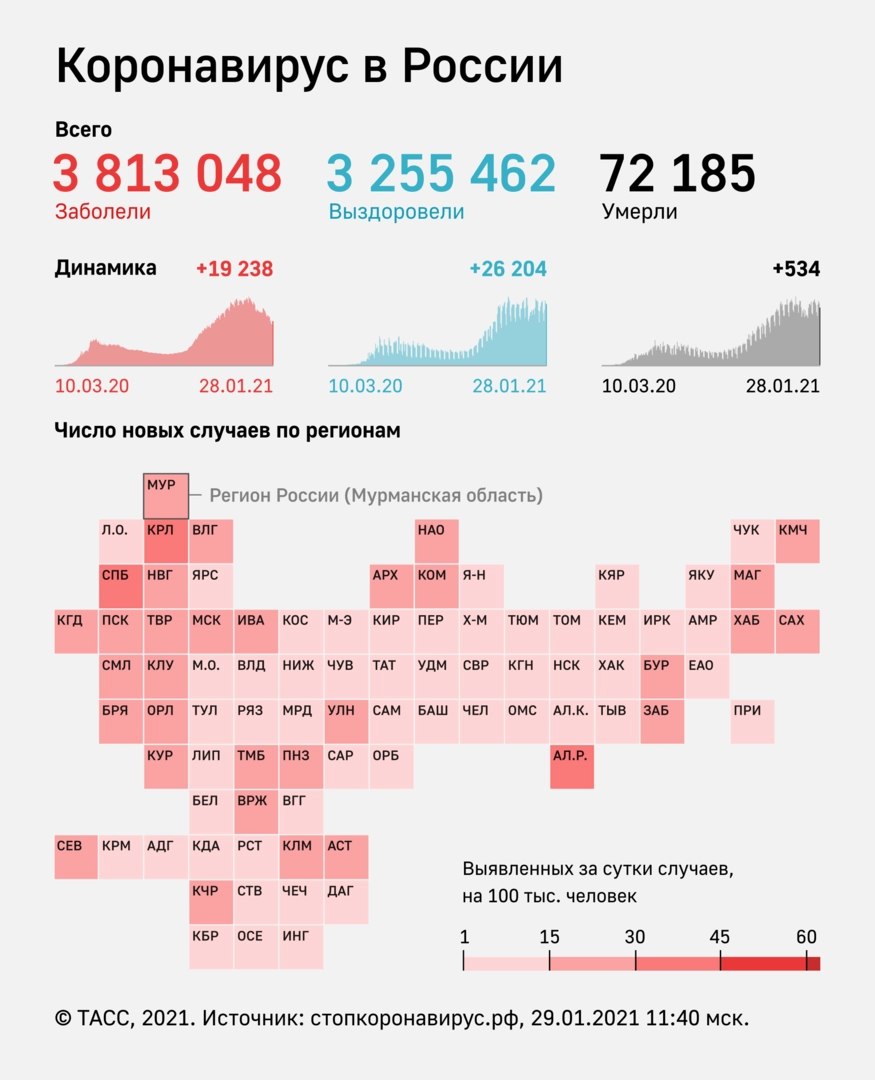 Ранее заместитель директора ЦНИИ эпидемиологии Роспотребнадзора Александр Горелов объявил, что заметное снижение заболеваемости COVID-19 в России начнется в марте. Текущую ситуацию с коронавирусом он назвал «фазой стабилизации».