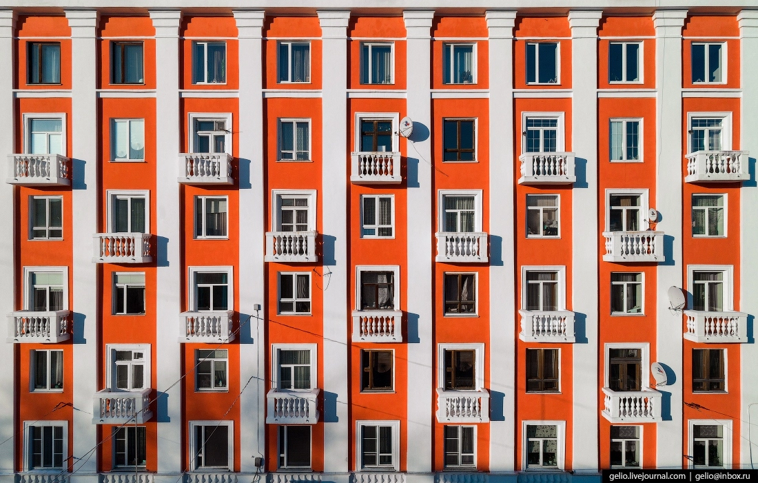 Самый длинный жилой дом в России (1488 метров). Его построили в конце 1970-х годов. Необычная форма строения обеспечивает ветрозащиту, что очень важно для северного города. Во дворе дома сила ветра несколько раз меньше, чем за пределами здания. Расположен в 305 микрорайоне.