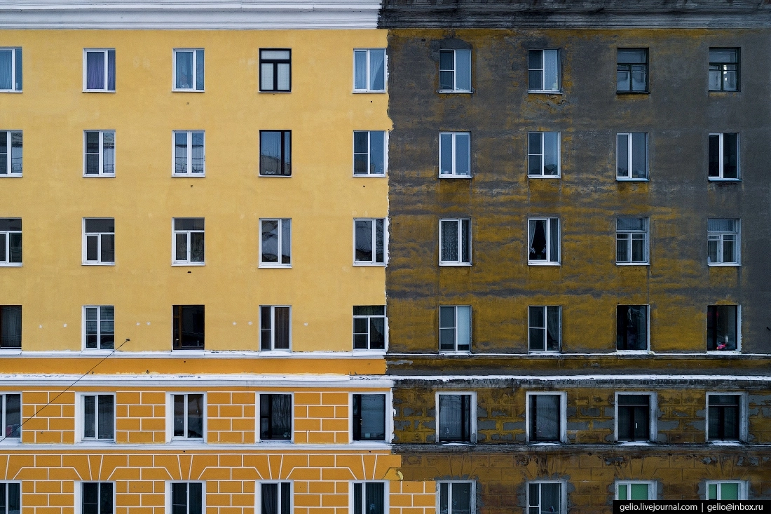 Сегодня центр Мурманска выглядит ярким и ухоженным благодаря масштабному капитальному ремонту, проведённому в 2017—2018 годах. Несколько десятков домов, имеющих статус объектов культурного наследия, были отреставрированы, а фасадам постарались вернуть их первоначальные цвета, зафиксированные в архивных записях и на старых фотографиях. Но по нескольким домам работы ещё не закончены.