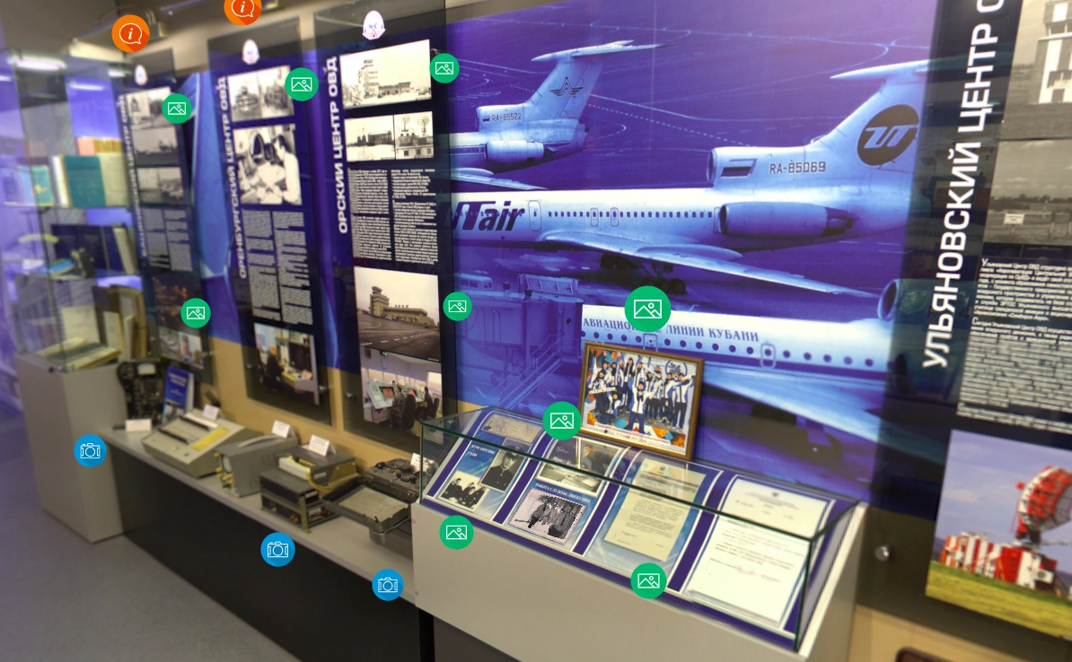 В ходе виртуального путешествия можно ознакомиться с результатами четырехлетней работы музея филиала «Аэронавигация Центральной Волги»: за это время сотрудниками музея были собраны сотни уникальных экспонатов и документов, фиксирующих ключевые моменты истории филиала. Все они заботливо оцифрованы и представлены в онлайн-версии музея. В виртуальных комнатах можно встретить сноски на актуальную информацию об экспонатах и ссылки на исторические фотоснимки.