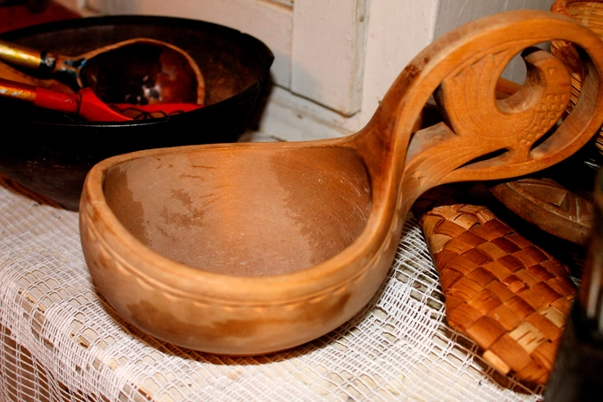 Расписные деревянные ложки, ковши-черпаки и настольные ковши являлись одним из излюбленных видов художественных изделий из дерева и служили украшением праздничного стола.