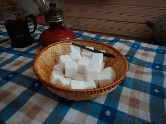 Ну, и конечно, большие кубики чрезвычайно твердого сахара – настоящее угощение для маленьких ребятишек и для их гостеприимных бабушек, для которых откалывание сахарных кусочков специальными щипцами было неотъемлемым элементом приятного чаепития.