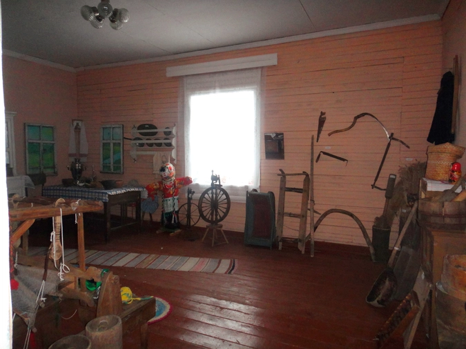 Кроме того, половина музейной комнаты занята орудиями сельского труда: ковши и вилы, ступа и сито, пила, серпы и несколько видов санок разного назначения.