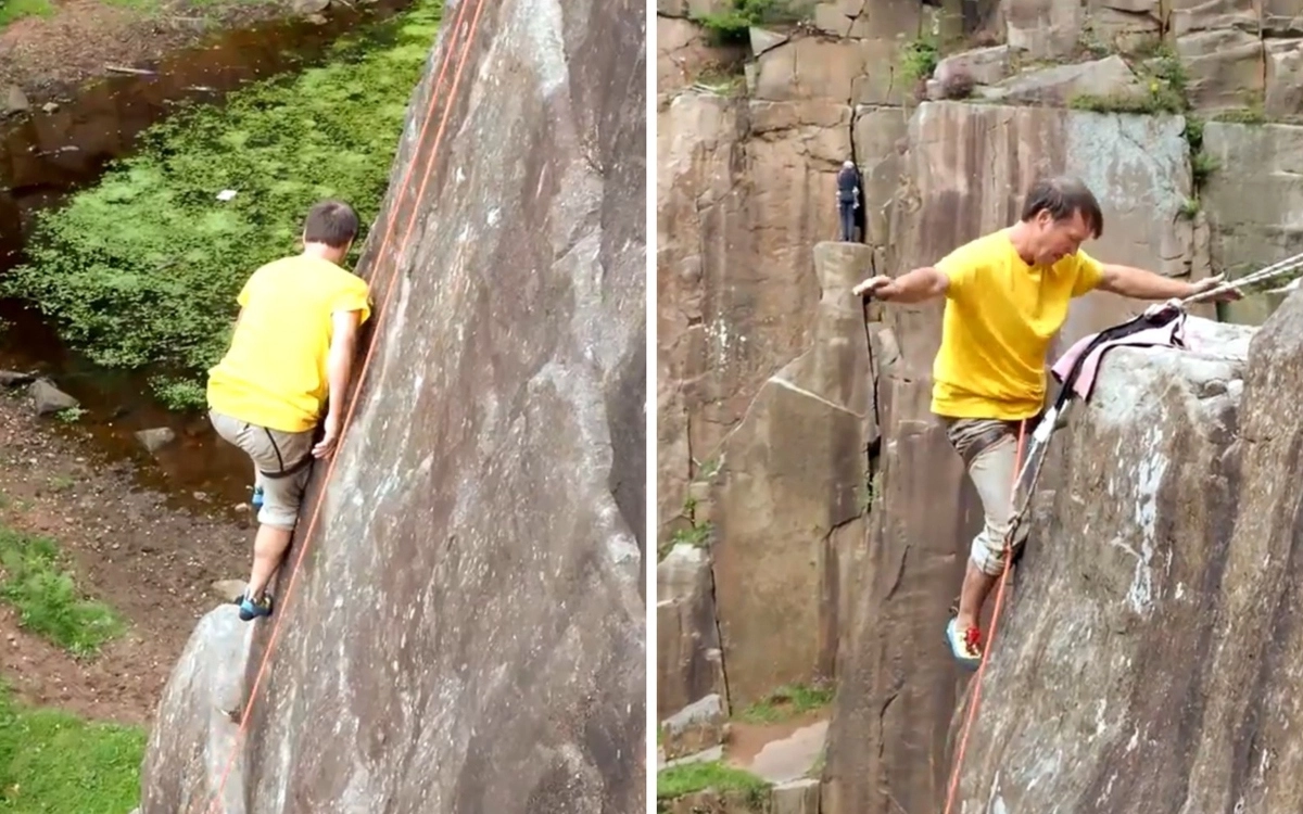 Мужчина научился преодолевать крутые скалы, практически не используя руки