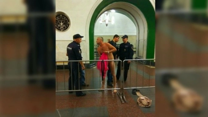 Мужчина полностью разделся на одной из станций московского метро