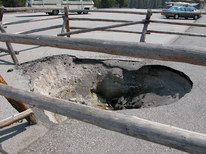 Через пару часов место с провалившимся асфальтом было огорожено и рабочие приступили к укреплению опасного участка.