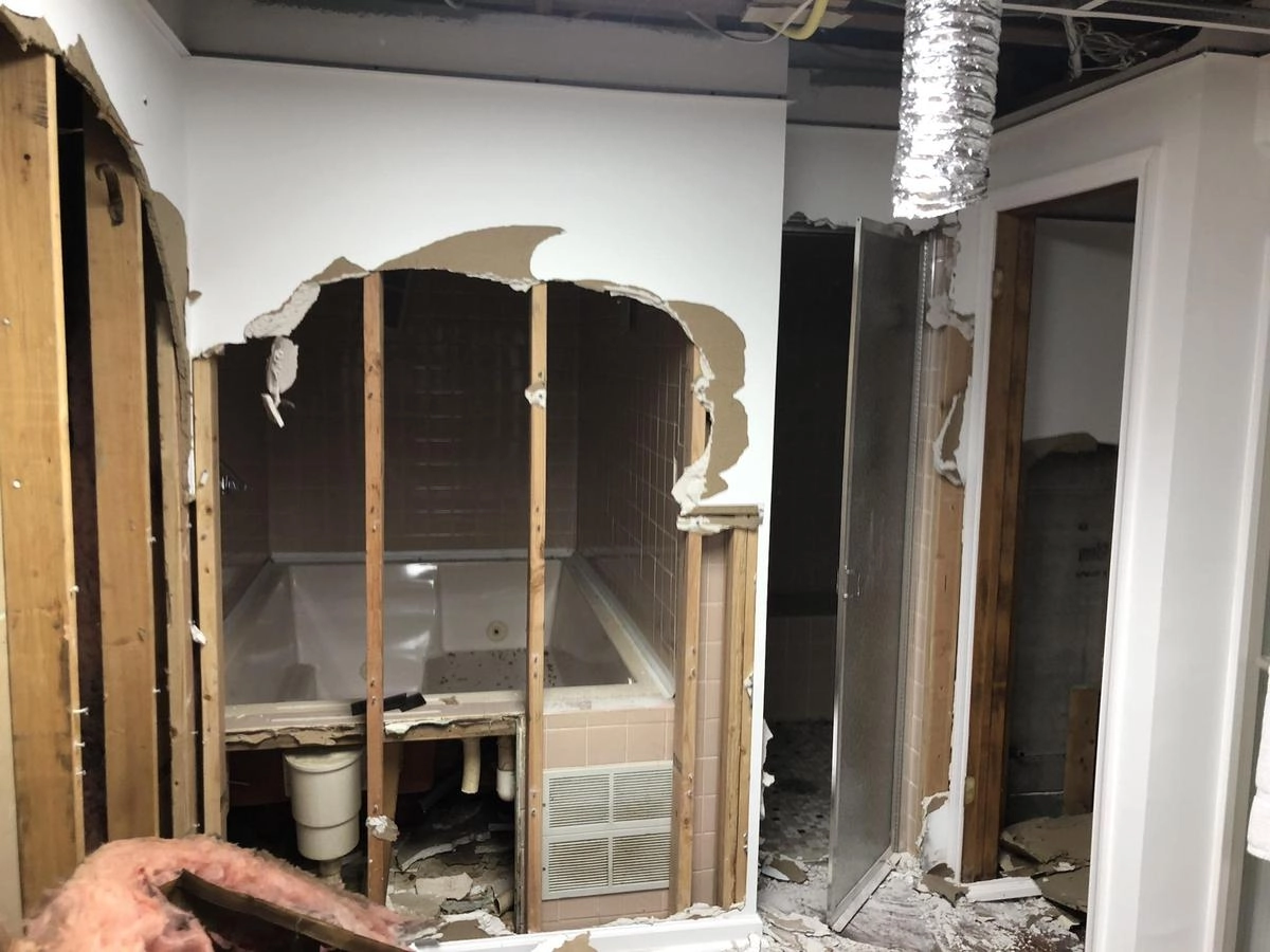 Разобрав стену до конца, мужчина открыл дверь и увидел помещение, которое, скорее всего, предназначалось для установки джакузи. В комнате даже была сантехника, которая оказалась отключенной.
