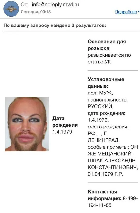 Основанием для розыска стала уголовная статья. Однако в базе розыска ведомства не указано, о какой именно статье идет речь. Похоже, что он разыскивается в связи с дискредитацией российской армии.