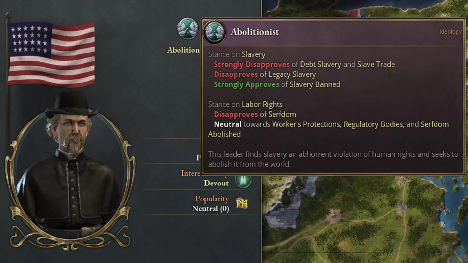 Это означает, что в игре начнут возникать особые движения, которые вызовут множество внутренних политических беспорядков, чему, в свою очередь, будут активно сопротивляться рабовладельцы как тип населения.