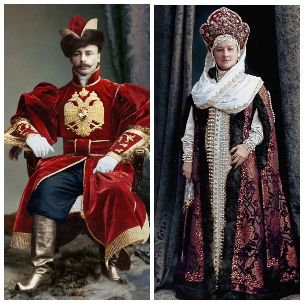 Император Николай II, например, был одет в костюм царя Алексея Михайловича с подлинным царским жезлом.