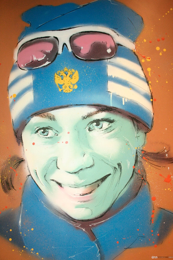 Интересно, догадывались ли организаторы и художники, запуская сей проект, что они в столь новом и агрессивном для степенных галерей виде портретного искусства преподнесут нам совершенно новые лица, ставшие сегодня иконами олимпийского движения.