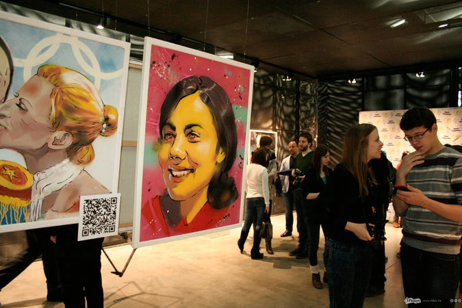 В доказательство этого под каждой картиной, на радость продвинутым посетителям, находился QR-код, позволяющий зрителям перенестись к моменту завоевания именно этой медали, дабы еще раз пережить радость и гордость за нашу Державу. Помимо этого, весь процесс создания картин, проходивший сразу же после этапов соревнований, был прямо в галерее продемонстрирован видеороликами, которые набрали десятки тысяч просмотров в интернете и стали популярными уже во время Игр.