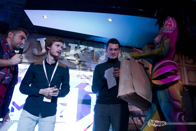 Кстати, о Булгакове: вручение наград сопровождалось крайне оригинальной культ-массс программой. Гостей вечера встречали обнаженные девушки, а ласковые распорядители церемонии первым делом предлагали пройти к барной стойке — за счет организаторов.