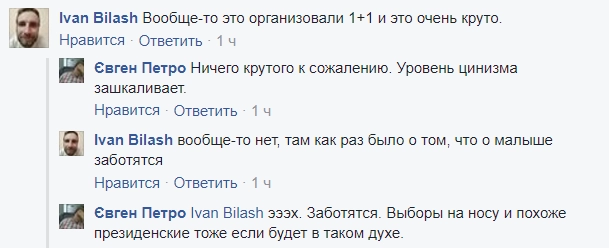 Впрочем, некоторых пользователей не убеждают даже эти аргументы, включая и автора гневного поста: «В том-то и дело, что Порошенко тут абсолютно ни при чем. Для исполнения детской мечты он не приложил никаких усилий и ни одной копеечки. Но именно его украинское телевидение показывало на всю страну вместе с малышом. Совпадение? Не думаю…» — написал Волков.