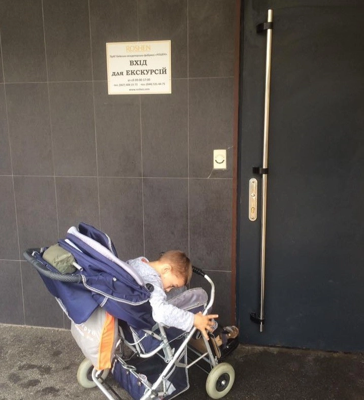 В связи с этим они также вспомнили о недавнем скандале на одном из заводов Roshen из-за того, что ребенка с ДЦП не пустили на экскурсию по фабрике. Фотография ребенка в инвалидном кресле перед закрытой дверью растрогала и возмутила тысячи украинцев.