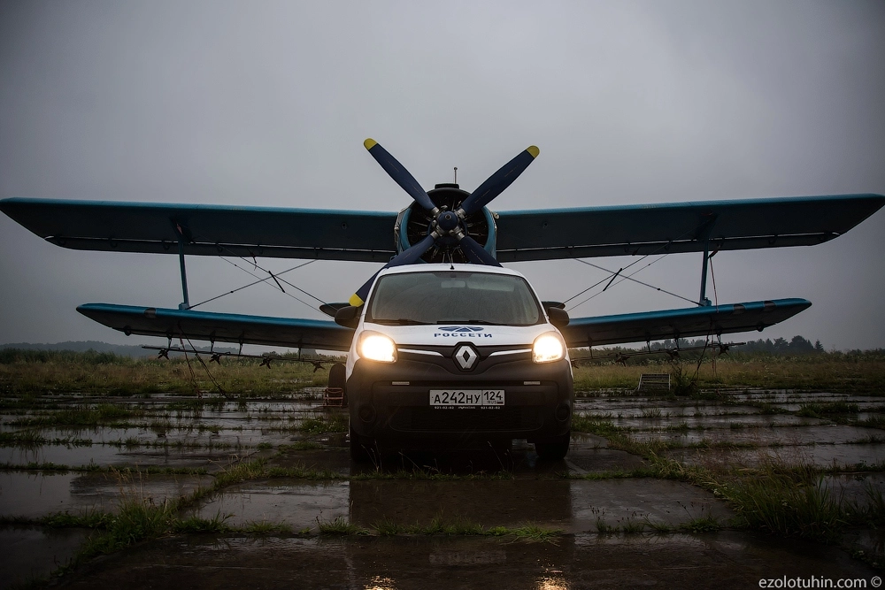 И отправились в ачинский аэропорт (он существует!) на фотосессию электромобиля с прекрасными Ан-2.