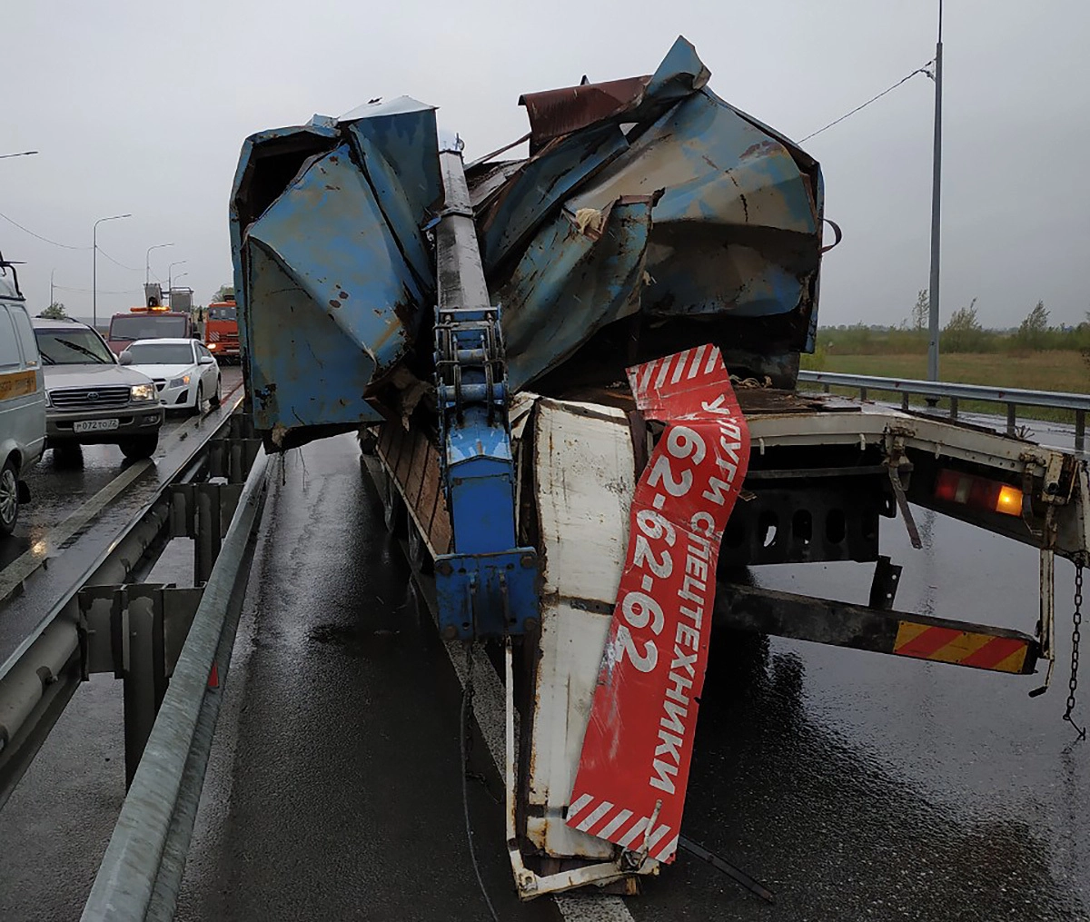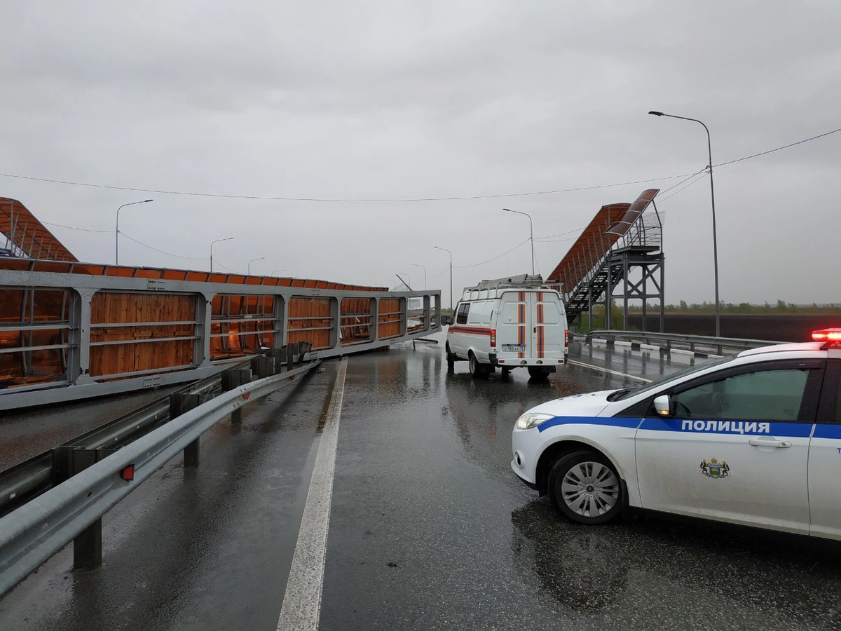 Мост обрушился из-за перевозившего габаритный груз автокрана, который не опустил стрелу и повредил надземный переход, сообщается на сайте регионального управления МЧС.