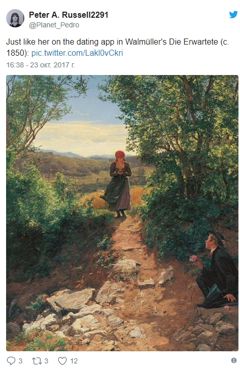 Житель Глазго по имени Питер Рассел разглядел на картине австрийского художника Фердинанда Георга Вальдмюллера «Ожидаемая» 1860 года модный гаджет.