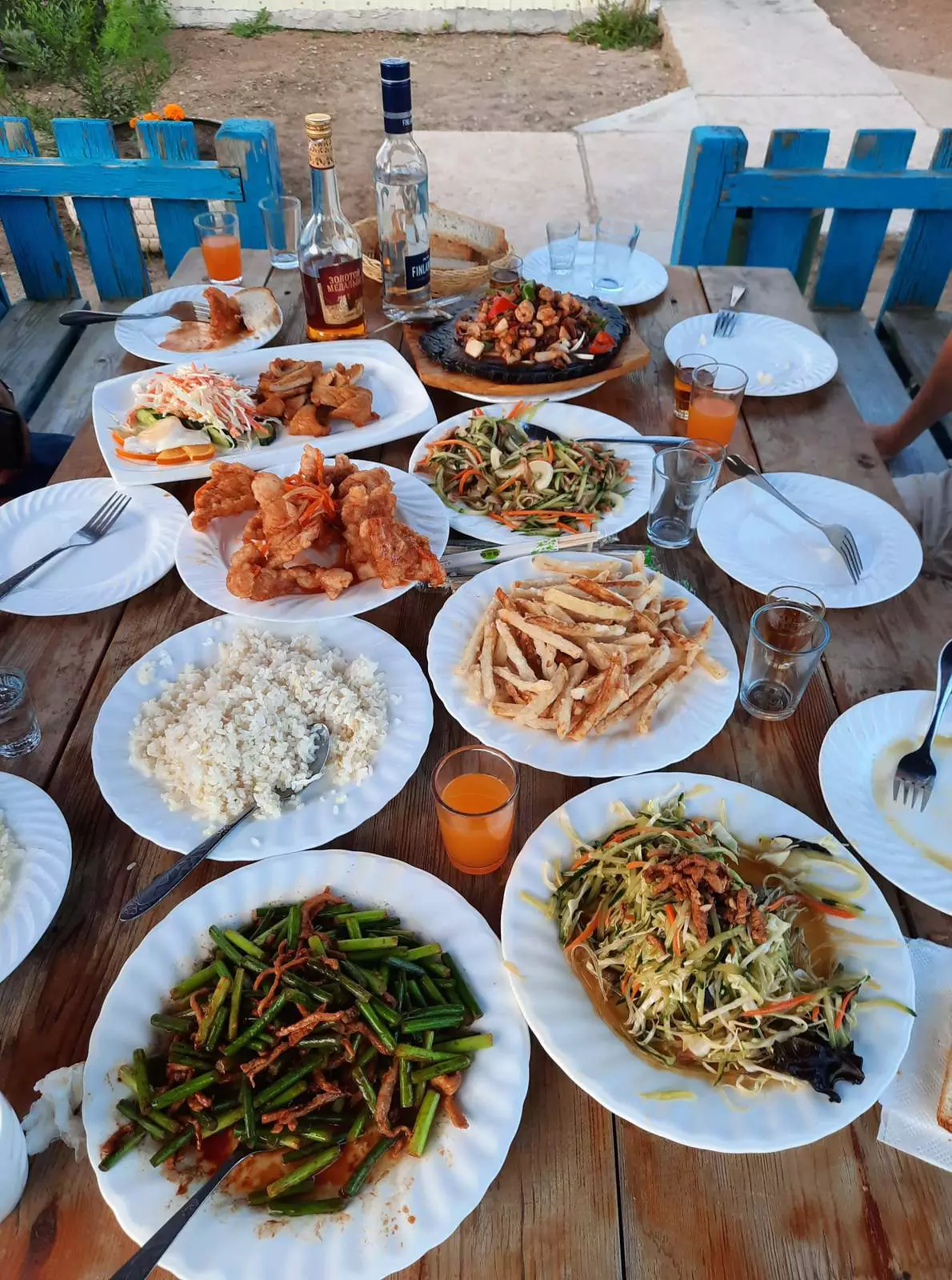 Вечером поужинали на веранде китайского ресторана. Очень приятно любоваться закатом, вкушая необычные восточные блюда. Но после захода солнца мы ощутили все прелести резко континентального климата — быстро и очень здорово похолодало. Пришлось срочно ретироваться в гостиницу.