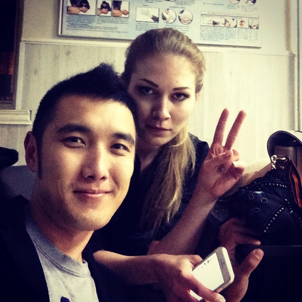 Александр Мучаев и Мария Катасонова после нападения, сэлфи в отделе полиции