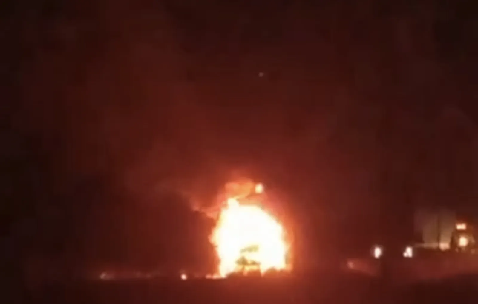 В сети распространяются кадры, на которых, вероятно, полыхает грузовик после взрыва.