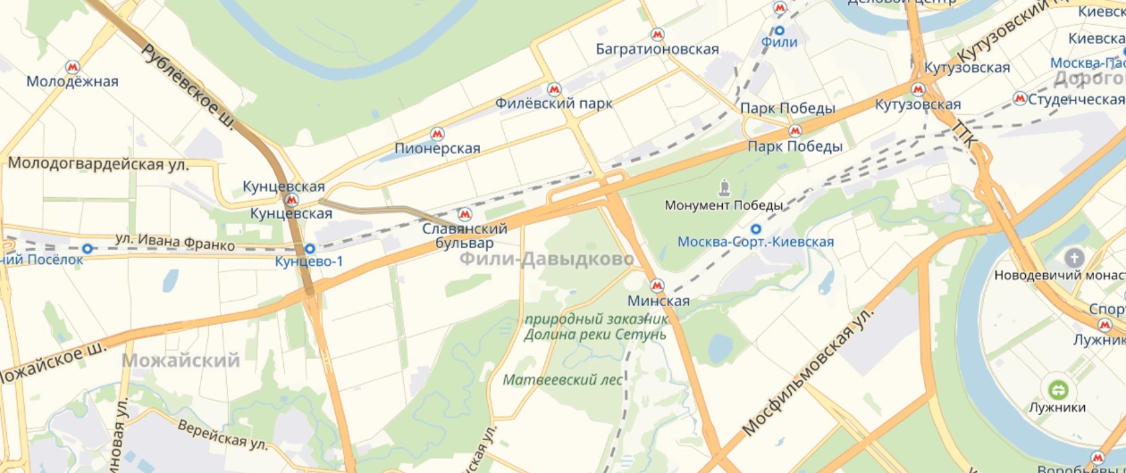 Дополнительный пятый ряд для автомобилей появился на участке Кутузовского проспекта от Минской улицы до пересечения с Рублевским шоссе в сторону области.