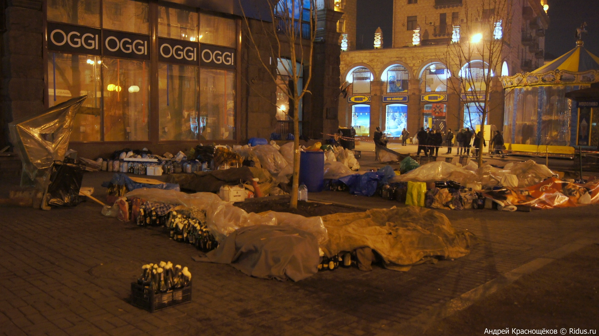 Уже после основной части выступлений один из сотников Майдана призвал участников манифестации не расходиться, «пока не стабилизируется обстановка в стране». Тем временем, исповедующие «прямое действие» революционеры не только не думают оставлять центр Киева, но и сохраняют боевую экипировку. А отдельный огороженный участок Крещатика выделен под склад «коктейлей Молотова».