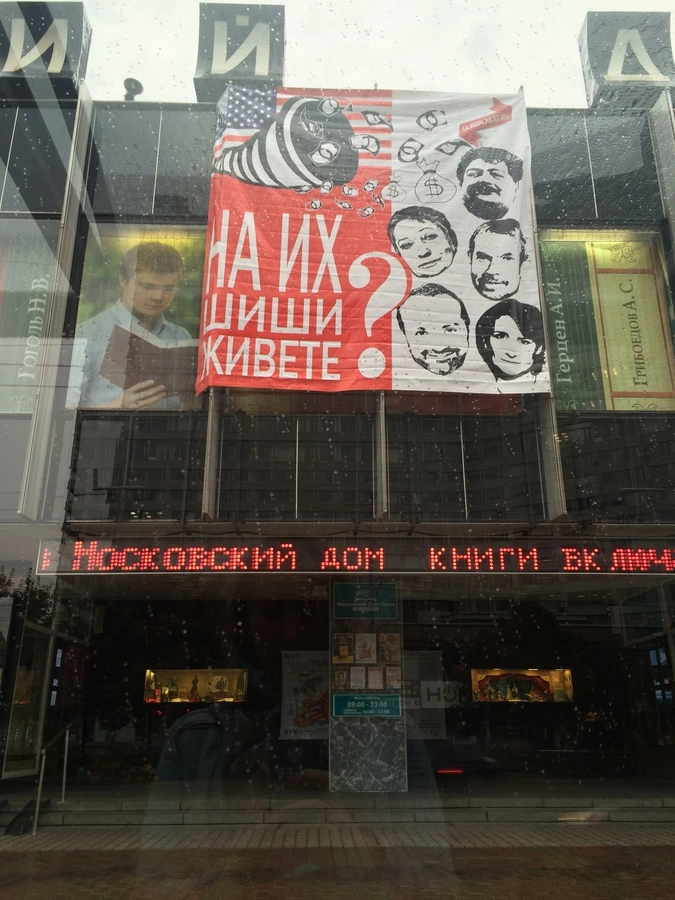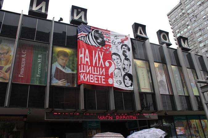 На Московском Доме Книги вывесили баннер «На их шиши живете?»