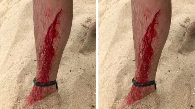 Двухметровая тигровая акула оставила на ноге Дилана отпечатки зубов. Да такие большие и глубокие, что врачам пришлось наложить семь швов.