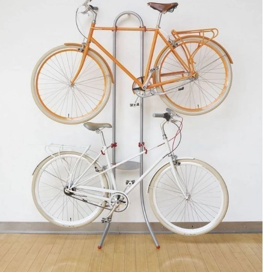 Стойки занимают место на полу, но не дают велосипеду упасть в самый неожиданный момент. Выбирайте на свой вкус — двухэтажные стойки, металлические или деревянные.