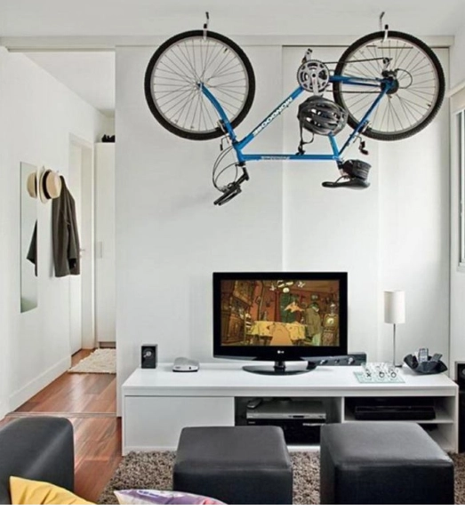 Если раньше приходилось оставлять велосипед в коридоре или каждый раз затаскивать его на лоджию, то сейчас двухколесное транспортное средство может стать интересным элементом интерьера.