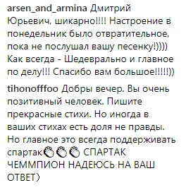 В середине сентября разразился скандал вокруг реакции некоторых «спартаковцев» на критическое стихотворение артиста Дмитрия Назарова, «посвященное» итальянскому специалисту. Лайк под постом со стихотворением поставили Денис Глушаков и Андрей Ещенко, в результате чего оказались в дублирующем составе «Спартака».